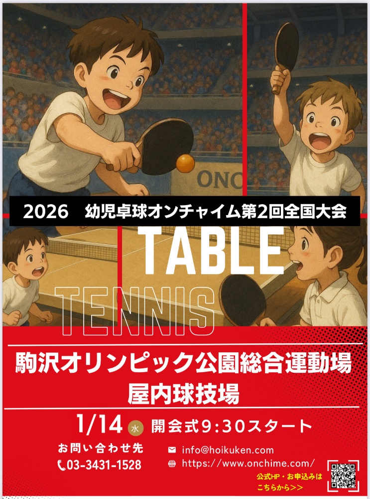 株式会社乳幼児保育研究所(慶應義塾大学理工学部発企業)は、 2025年1月24日(金)ベルサール西新宿(東京都庁向かい)にて『幼児卓球オンチャイム第1回全国大会』を開催します。2-5歳児の年齢児別幼児卓球の全国大会は日本初となります。